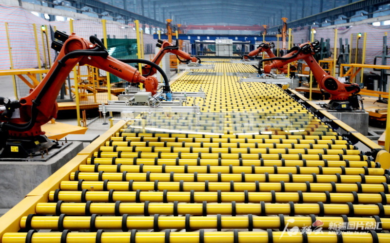 2016年8月,位于新疆生產(chǎn)建設(shè)兵團(tuán)第五師的新疆普耀新型建材有限公司生產(chǎn)車間內(nèi)景。新疆圖片總匯資料圖片