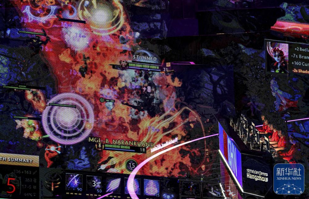 2023年10月2日,中國隊(duì)選手在比賽中(多重曝光照片)。 當(dāng)日,在杭州亞運(yùn)會電子競技項(xiàng)目刀塔決賽中,中國隊(duì)以2比1戰(zhàn)勝蒙古國隊(duì),獲得冠軍。 新華社記者 顏麟蘊(yùn) 攝