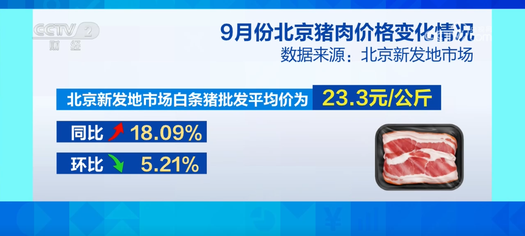 數(shù)據(jù)顯示,9月份,北京新發(fā)地市場白條豬批發(fā)平均價為每公斤23.3元,比去年同期上漲18.09%,比8月份下降了5.21%,主要原因是養(yǎng)殖場出欄意愿增強,此前分流到二次育肥環(huán)節(jié)的生豬也開始出欄,使得豬肉的供應(yīng)能力明顯增強。9月份,新發(fā)地市場白條豬上市量比8月份增加了13%,豬肉價格也失去了上漲的動力,進(jìn)入10月份以后肉價逐漸趨穩(wěn)、波動幅度較小。