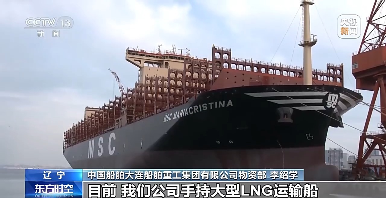 這兩天,大連這家船舶公司一艘在建大型液化天然氣(LNG)運輸船??吭诖a頭泊位,近千名工人正在進行船舶舾裝作業(yè)。在碼頭的另一側,一艘LNG雙燃料集裝箱船正在做交付前最后的調試。這艘海上“巨無霸”采用天然氣和燃油雙燃料驅動,能夠減少碳排放20%以上,減少100%的硫氧化物排放。