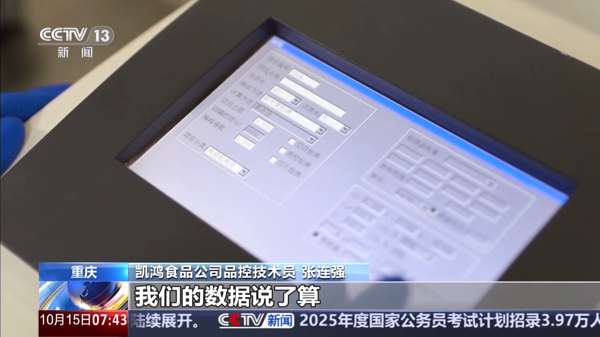 重慶凱鴻食品公司品控技術(shù)員 張連強:像牛肉就要檢測七項,比如說里面的過氧化脂,精確到了每百克不得超過0.25克,非常嚴(yán)格。產(chǎn)品好不好,能不能走向市場,老板說了不算,我們的數(shù)據(jù)說了算。