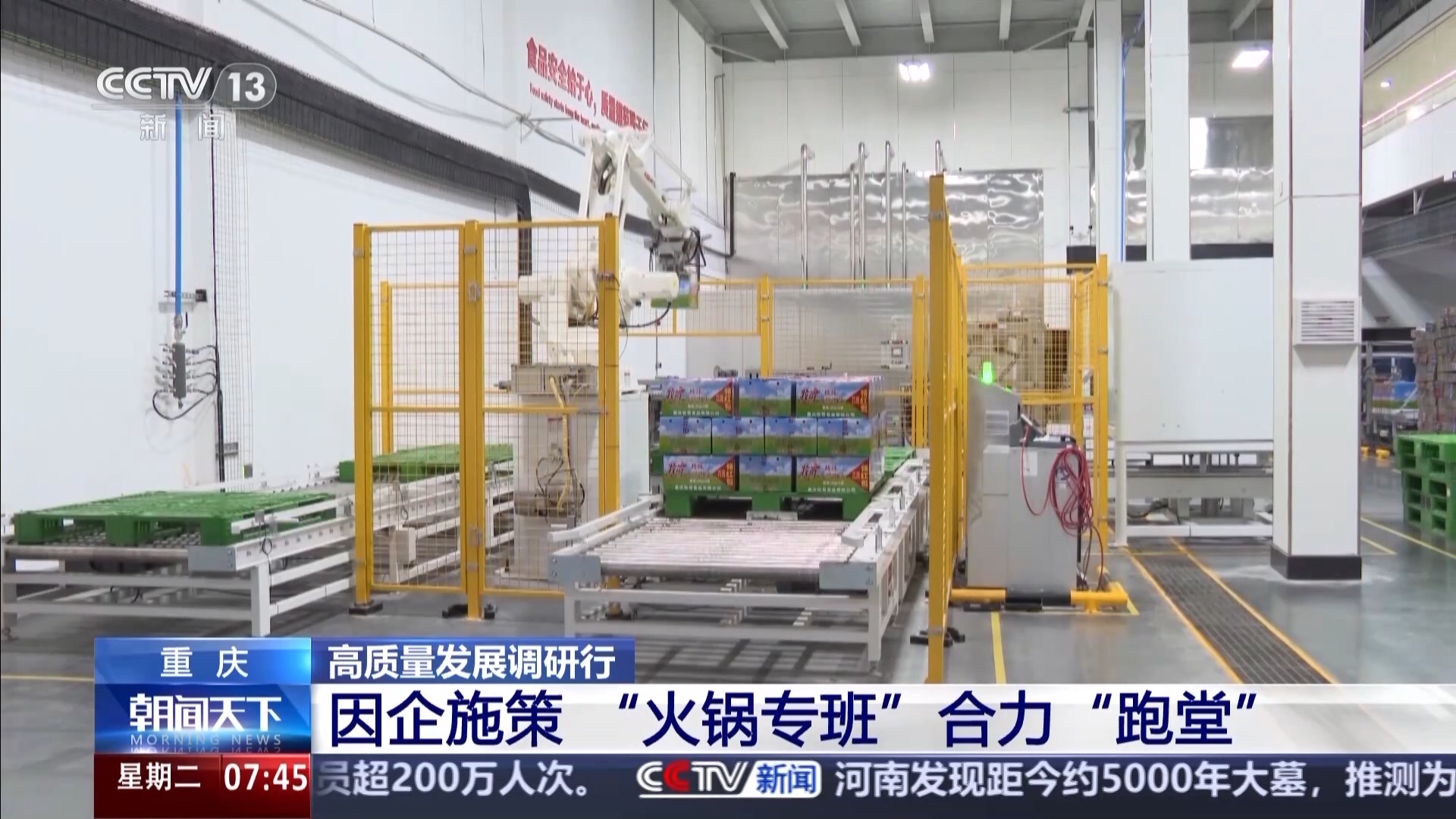 根據(jù)消費者口味的變化,持續(xù)研發(fā)最新的口味,如今,像這樣的火鍋產(chǎn)業(yè)研發(fā)平臺,重慶就建了11個,取得了278件專利,為成千上萬的火鍋企業(yè)提供技術(shù)支持。不僅如此,重慶還成立了火鍋專班,農(nóng)業(yè)、產(chǎn)業(yè)、商務(wù)等部門的工作人員一起為企業(yè)跑堂。
