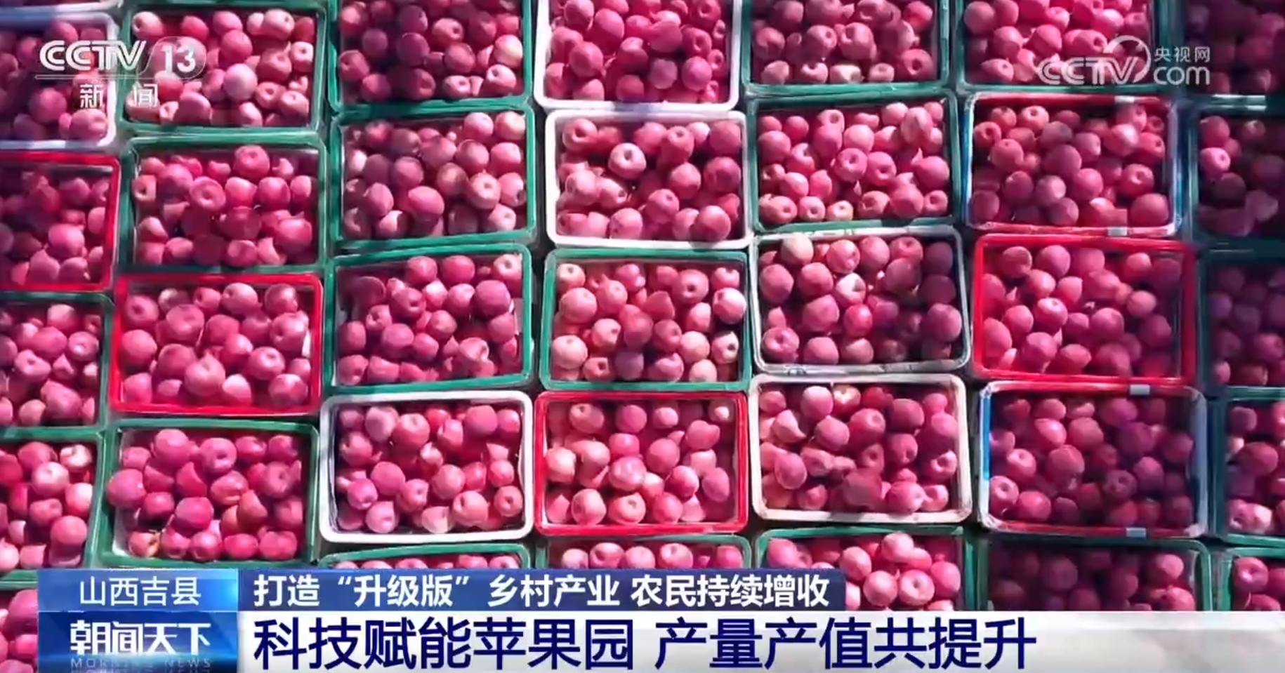 在山西吉縣,蘋果專業(yè)村占到了當?shù)匦姓蹇倲?shù)的80%以上,為了讓蘋果產(chǎn)業(yè)做強,當?shù)匾钥萍假x能蘋果園,通過大數(shù)據(jù)、云計算進行智能灌溉、精準施肥,同時運用矮化密植栽培技術(shù)實現(xiàn)了蘋果產(chǎn)量和產(chǎn)值的提升,這項技術(shù)已經(jīng)運用在全縣5000畝蘋果地。