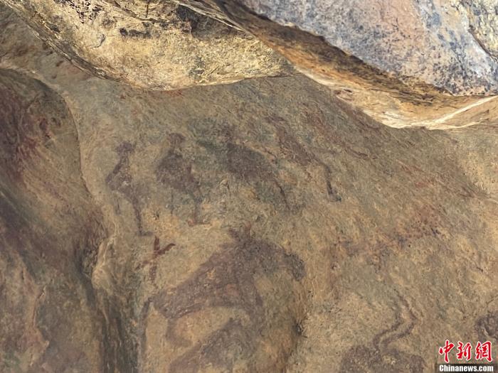 圖為阿勒泰墩德布拉克滑雪狩獵巖畫(huà)。 (記者 王珊珊 攝)