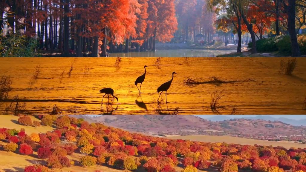 江蘇黿頭渚秋意漸濃,與太湖相映成趣;山東黃河入海口,成群鳥(niǎo)兒在濕地覓食、嬉戲;山西太行山色彩繽紛,秋色宜人。