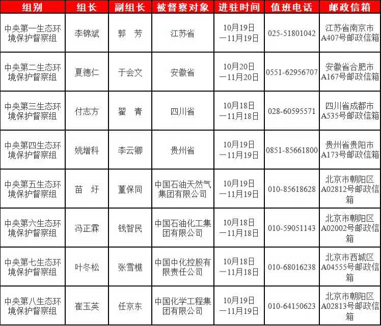 第三輪第三批中央生態(tài)環(huán)境保護督察進駐一覽表