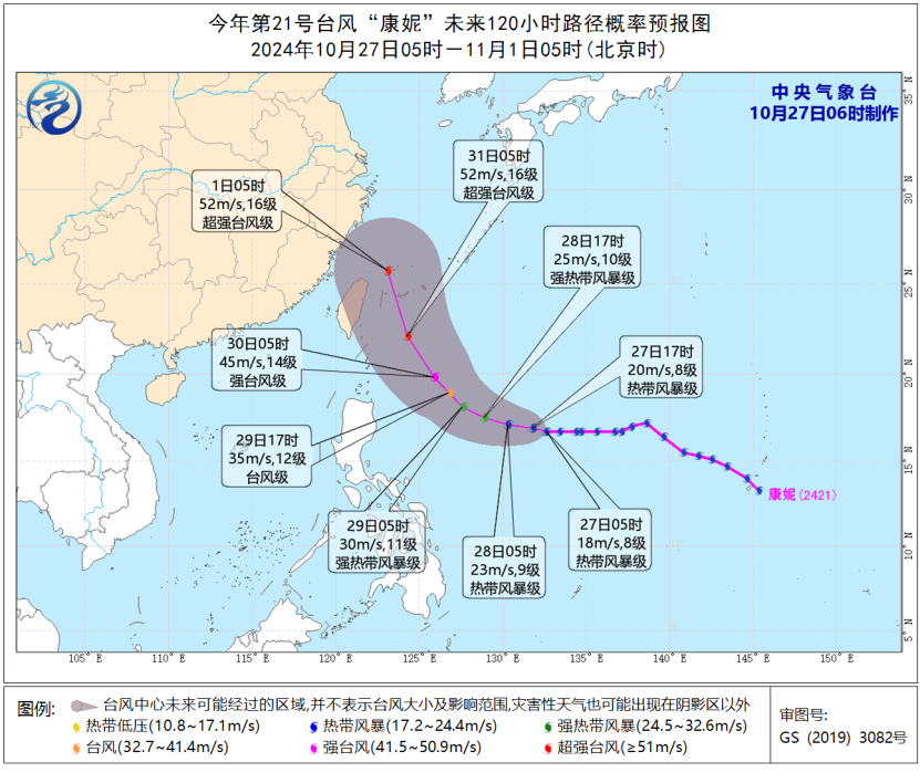 28日起,受冷空氣和“康妮”的共同影響,東海南部、臺灣海峽、臺灣以東洋面、巴士海峽將有6至8級、陣風9級的大風。