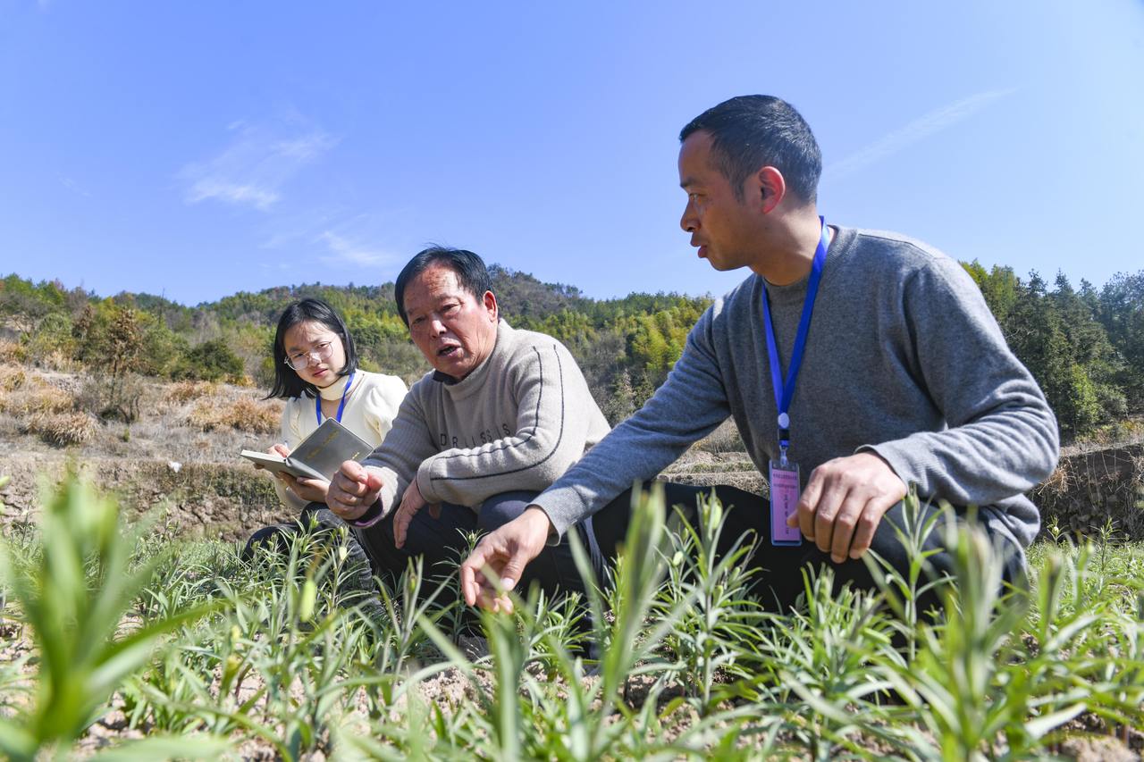 武義縣紀委監(jiān)委組織紀檢監(jiān)察干部下沉一線,堅決整治困擾群眾身邊的形式主義等問題,切實為基層減負,更好服務(wù)鄉(xiāng)村振興。圖為該縣紀檢監(jiān)察干部深入坦洪鄉(xiāng)黃干山村中藥材種植示范基地了解相關(guān)情況。通訊員 沈云建 攝