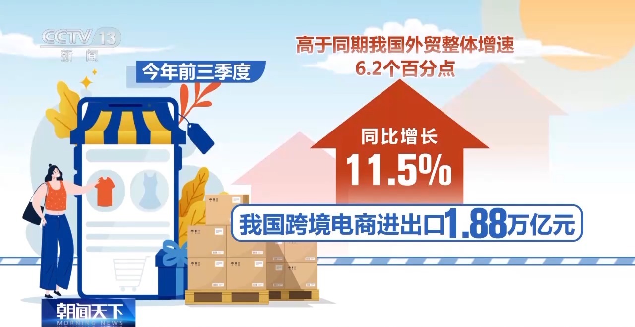 據海關總署最新發(fā)布的數據顯示,今年前三季度,我國跨境電商進出口1.88萬億元,同比增長11.5%,高于同期我國外貿整體增速6.2個百分點,正成為我國外貿增長新動能。
