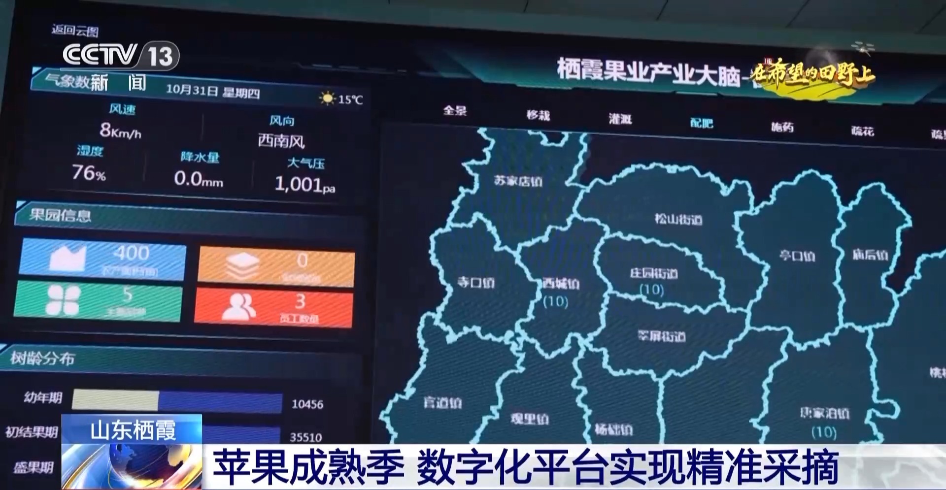 棲霞市供銷(xiāo)合作社聯(lián)合社負(fù)責(zé)人 李國(guó)勇:通過(guò)這個(gè)大屏,我們可以清楚地看到果樹(shù)的生長(zhǎng)情況,平臺(tái)也會(huì)將果樹(shù)生長(zhǎng)情況相關(guān)信息通報(bào)給果農(nóng)進(jìn)行精準(zhǔn)采摘。