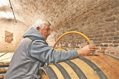 在酒莊的地下酒窖內(nèi),一排排橡木桶有序排放,員工正在檢查環(huán)境溫度和濕度。酒莊首席釀酒師王俐介紹,弗魯什卡山產(chǎn)出的葡萄酒口感很接近中國消費(fèi)者的喜好。酒莊特意選擇了梅洛等葡萄品種,并采用獨(dú)特加工工藝,使葡萄酒的風(fēng)味更加柔和細(xì)膩。她拿出一款“奎特梅洛”紅葡萄酒介紹:“這是專門針對中國市場推出的產(chǎn)品,會在橡木桶中存放18個(gè)月。這款產(chǎn)品是酒莊在中國市場的暢銷款。”