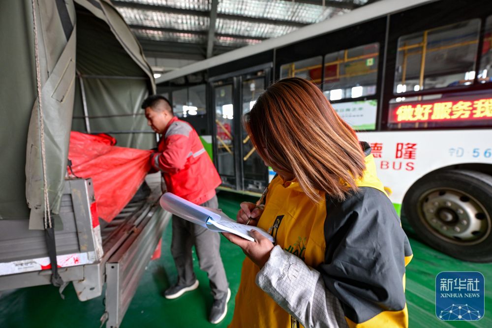 11月9日,一輛載有快遞物品的城鄉(xiāng)公交車從隆德公交公司倉庫駛出。