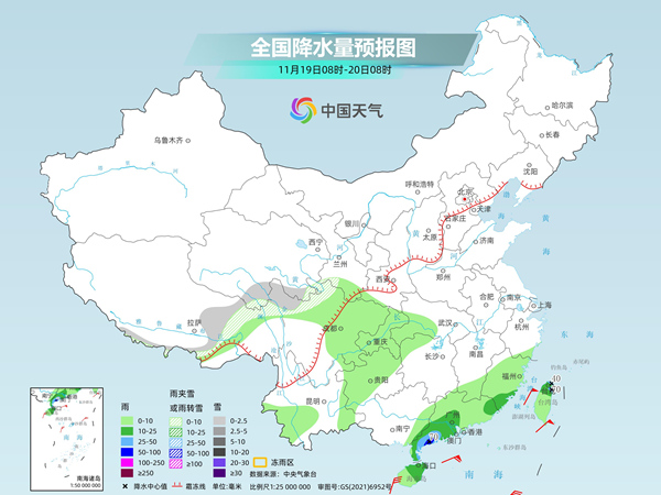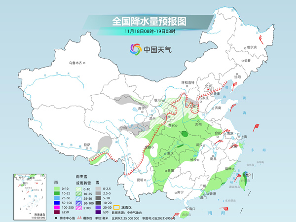 具體來看,中央氣象臺(tái)預(yù)計(jì),今天,內(nèi)蒙古河套地區(qū)、西藏東北部、青海北部和東南部、川西高原北部、甘肅河西和南部、寧夏大部、陜西中北部、山西中南部等地部分地區(qū)有小到中雪或雨夾雪。陜西南部、河南大部、安徽西部、湖北中西部、湖南北部、四川盆地、重慶、貴州大部、云南東部、福建東部和南部、廣東東部、海南島、臺(tái)灣島等地部分地區(qū)有小到中雨,其中,臺(tái)灣島東北部等地部分地區(qū)有大到暴雨。