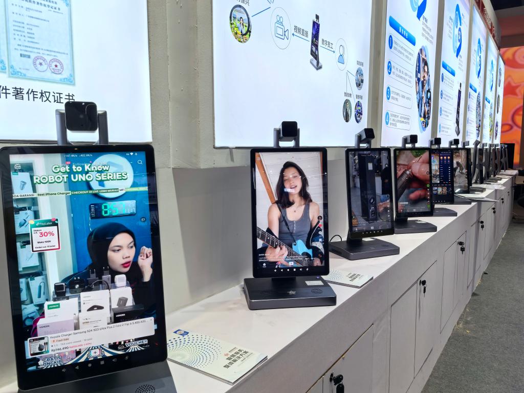 在廣東智慧音視頻科技有限公司的展位前,一排多功能直播智慧機(jī)引起了觀眾的濃厚興趣。該公司跨境電商負(fù)責(zé)人告訴記者,越來(lái)越多的中小企業(yè)嘗試“直播+電商”的出海模式,這款產(chǎn)品內(nèi)嵌了短視頻直播的云導(dǎo)播臺(tái),同時(shí)借助外貿(mào)專(zhuān)線,方便企業(yè)高效切入海外興趣電商的“賽道”。