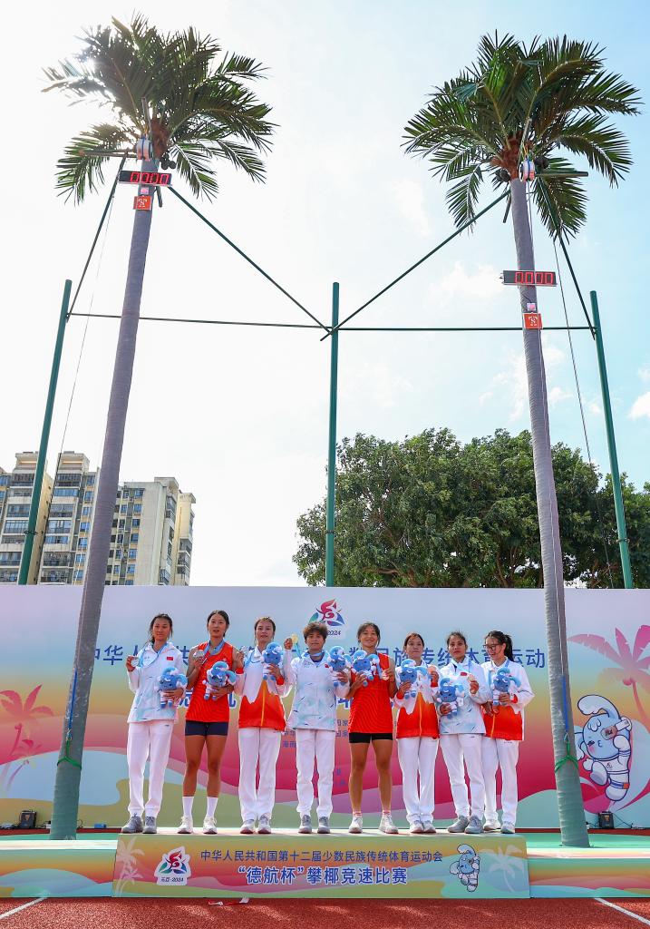 24日,第十二屆全國少數(shù)民族傳統(tǒng)體育運動會攀椰競速比賽結束爭奪,海南隊的羅軍和符詩軍分獲男子、女子一等獎。