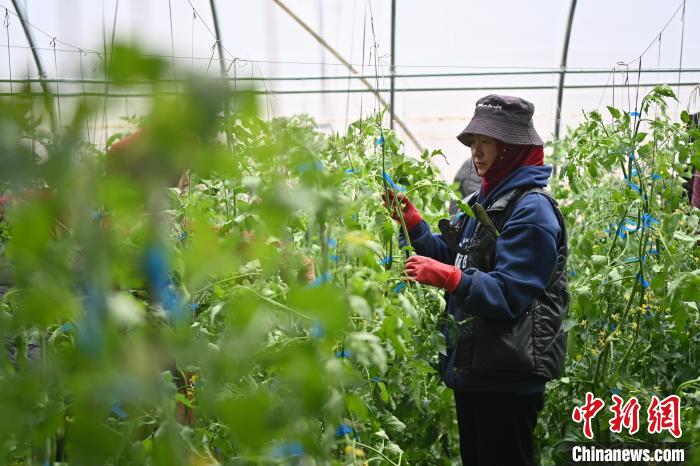 馬芬蓮和工友們忙著給番茄苗整枝打杈,她額頭上因地震房屋倒塌留下的疤痕仍清晰可見(jiàn)。與記者交流時(shí),不時(shí)有同村婦女打來(lái)視頻電話咨詢種植問(wèn)題。