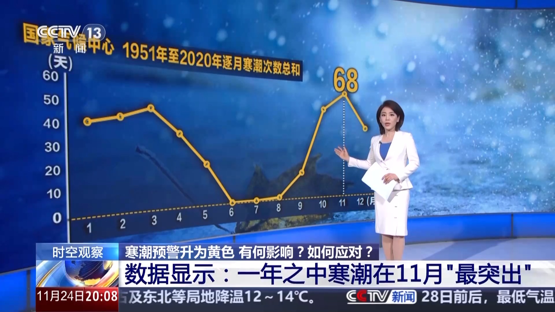 從國(guó)家氣候中心“1951年至2020年逐月寒潮次數(shù)總和”的數(shù)據(jù)中就可以看到:一年之中,寒潮在11月表現(xiàn)最突出,1951到2020年在我國(guó)一共出現(xiàn)了68次,相反在6到7月,則一次都沒有露面。