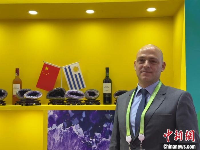 奧蘭多已是第二次參加鏈博會。這一次,烏拉圭帶來了紅酒、牛奶、紫水晶等產品參展。