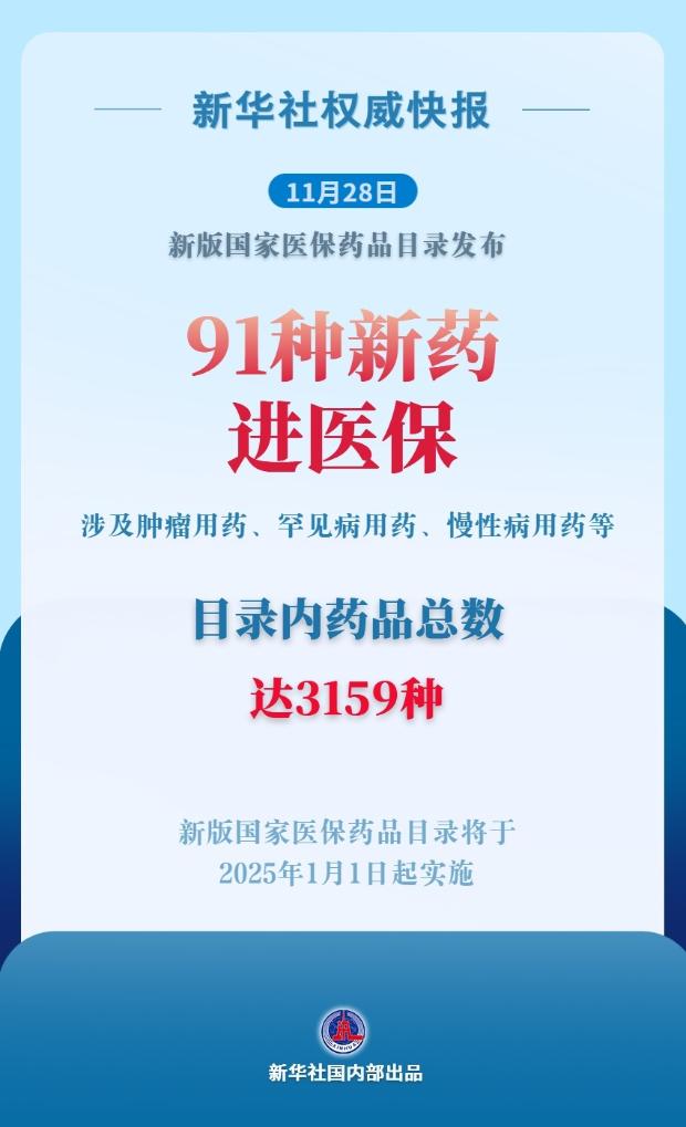 自成立以來(lái),國(guó)家醫(yī)保局已連續(xù)7年開展醫(yī)保藥品目錄調(diào)整工作。本次調(diào)整后,目錄內(nèi)藥品總數(shù)將增至3159種,腫瘤、慢性病、罕見(jiàn)病、兒童用藥等領(lǐng)域的保障水平得到提升。新版國(guó)家醫(yī)保藥品目錄將于2025年1月1日起實(shí)施。