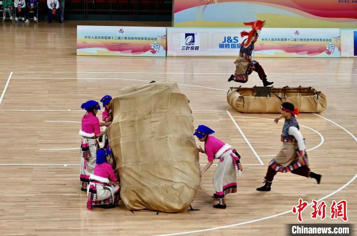 11月23日,海南三亞,《羌鈴賽》亮相第十二屆全國少數(shù)民族傳統(tǒng)體育運動會。王利文 攝