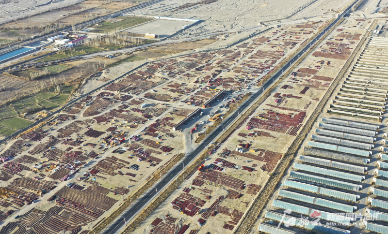315國(guó)道策勒縣段兩側(cè)的千畝紅棗晾曬場(chǎng)(11月29日無人機(jī)攝)。