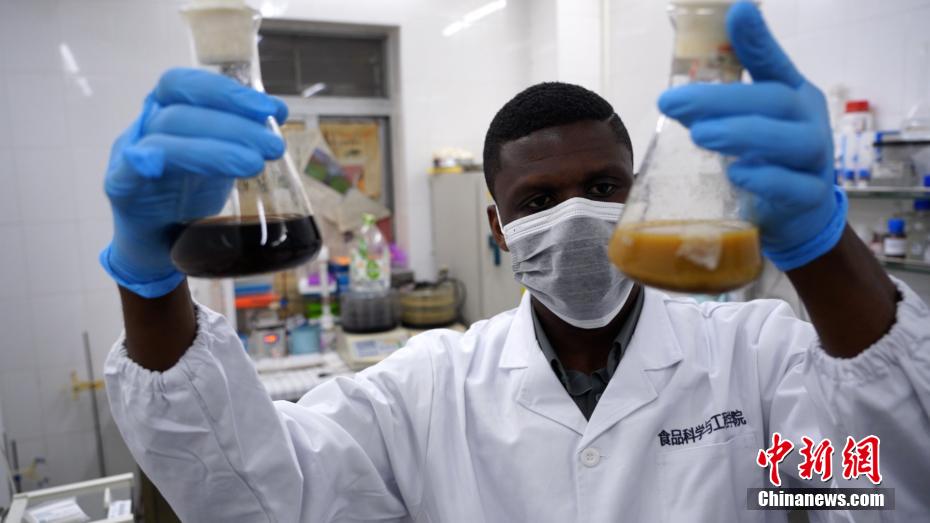 威廉(William)來自非洲加納首都阿克拉,本科畢業(yè)于加納的發(fā)展研究大學(xué)營養(yǎng)學(xué)專業(yè),在做了兩年?duì)I養(yǎng)健康醫(yī)師后,他對(duì)兒童營養(yǎng)不良問題感到擔(dān)憂,于是萌生了提升學(xué)歷并對(duì)營養(yǎng)學(xué)做進(jìn)一步研究的想法。圖為廣東廣州,威廉在華南理工大學(xué)實(shí)驗(yàn)室里做實(shí)驗(yàn)。