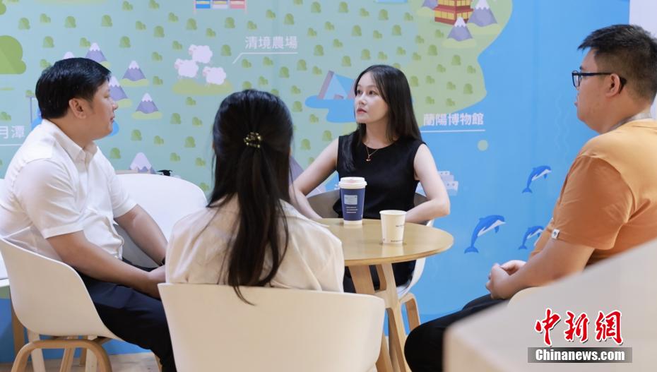 在臺灣大學生到廣州實習活動的開營儀式上當主持人,以自身經(jīng)歷分享給臺灣各大高校的學弟學妹們,吳宥璇既是主持人,也是過來人。臺下的年輕學子看著這位學姐,身上有許多靚麗的標簽,“美國名?!薄皠?chuàng)業(yè)達人”“年輕有為”,每一個都令人向往,但故事的開頭,大家都不知道,這位只身闖大陸的學姐,卻被家人禁止來到大陸。圖為廣東廣州,吳宥璇在廣州市白云區(qū)匯龍海峽兩岸青年創(chuàng)業(yè)基地里和同事交流。