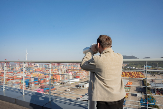 記者們站在觀景平臺,通過望遠鏡親眼見證了全球最繁忙集裝箱港口之一的現(xiàn)代化作業(yè),他們爭相與壯觀的碼頭場景合影留念。來自哈薩克斯坦《誠實報》社會文化部主任納烏雷茲別克·薩爾沙耶夫在接受環(huán)球網(wǎng)記者采訪時說道“寧波舟山港的運作效率和智能化管理令人贊嘆,它無疑是全球物流行業(yè)的標桿?!?/p>