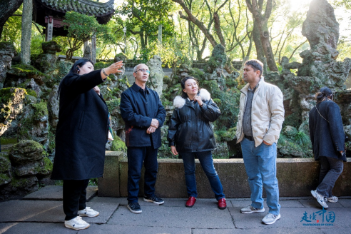 天一閣作為中國現(xiàn)存最古老的私人藏書樓之一,深深吸引了外國記者的注意。天一閣內(nèi)保存了豐富的古籍與文化遺產(chǎn),展現(xiàn)了寧波作為“文化名城”的深厚底蘊。講解員向記者們詳細地介紹了天一閣的歷史背景和文化價值,講述了“書藏古今、港通天下”的文化內(nèi)涵,使記者們對寧波的文化歷史有了更深的理解。