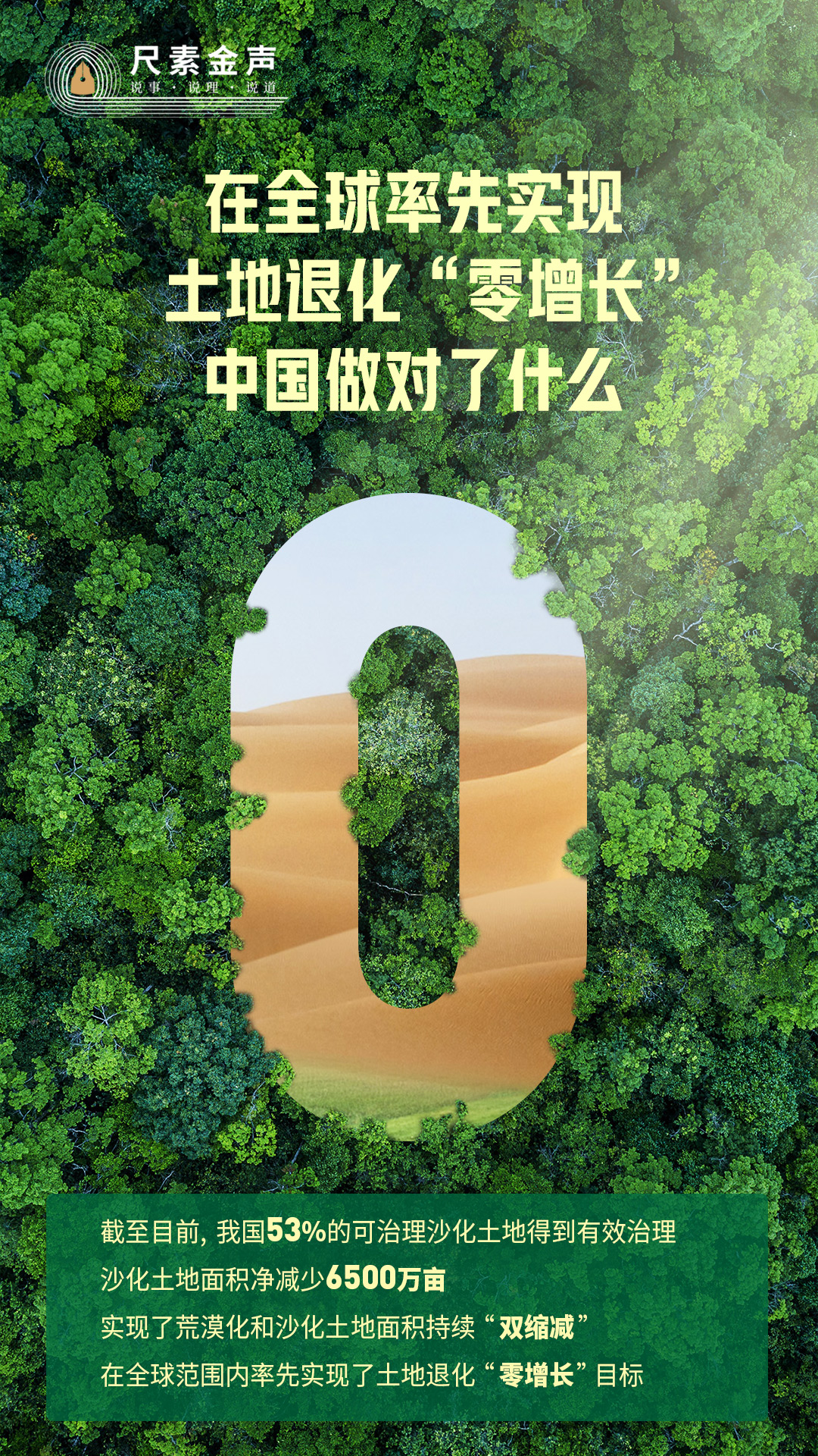 最新數(shù)據(jù)顯示,截至目前,我國53%的可治理沙化土地得到有效治理,沙化土地面積凈減少6500萬畝,實現(xiàn)了荒漠化和沙化土地面積持續(xù)“雙縮減”,在全球范圍內(nèi)率先實現(xiàn)了土地退化“零增長”目標。