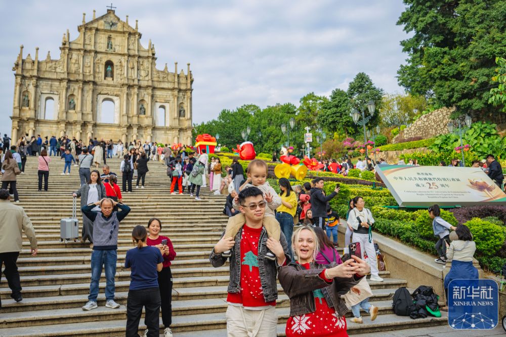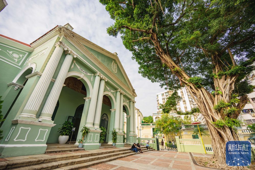 12月12日,游客坐在澳門(mén)崗頂劇院的臺(tái)階上。