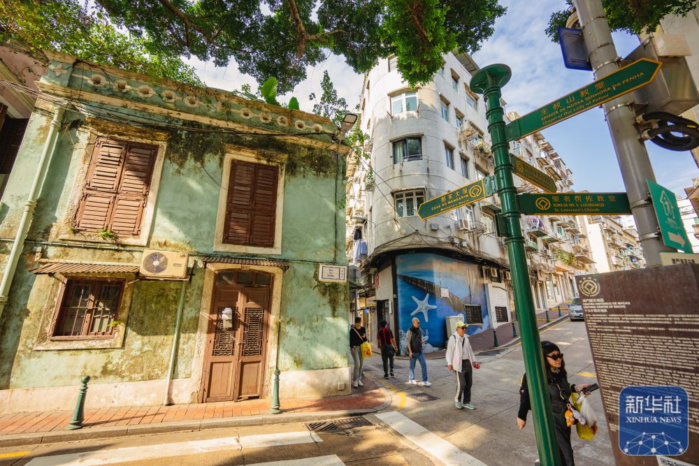 這是12月12日拍攝的澳門(mén)大三巴牌坊及其周邊建筑。