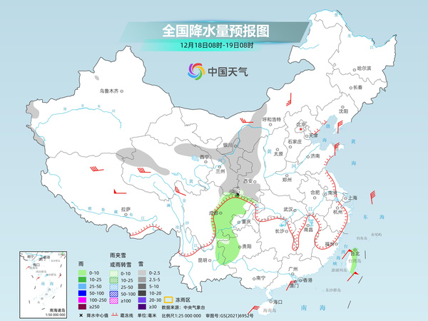中央氣象臺預(yù)計,今天,內(nèi)蒙古西部、新疆南疆山區(qū)、青海北部和西部、甘肅河西和東部、寧夏、陜西西部和南部、山東半島等地部分地區(qū)有小雪或雨夾雪,其中,甘肅東南部、陜西西南部等地部分地區(qū)有中到大雪。四川盆地、貴州西部、云南東北部及臺灣島中東部等地部分地區(qū)有小雨,局地有中雨。