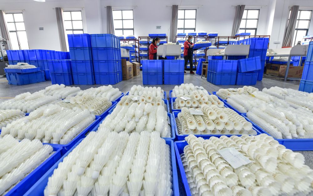 敦寨鎮(zhèn)的羽毛球,還衍生出了包括羽毛球拍等產(chǎn)品和包裝在內(nèi)的眾多下游企業(yè)。其中一家公司生產(chǎn)的碳纖維羽毛球拍,每月可達3萬支,大部分產(chǎn)品出口到東南亞等海外市場。