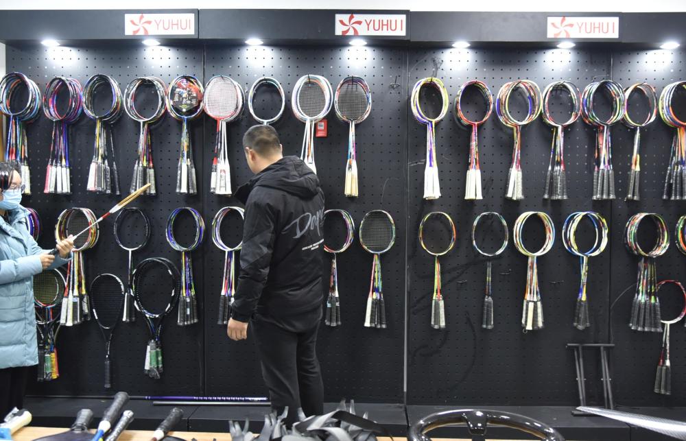 敦寨鎮(zhèn)的羽毛球產(chǎn)業(yè)帶動羽毛球拍產(chǎn)品的生產(chǎn)制造。新華社記者 李凡 攝