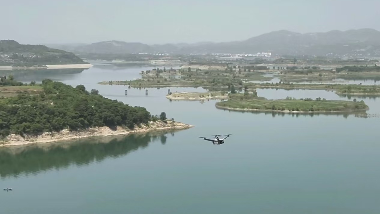 無(wú)人機(jī)在丹江口庫(kù)區(qū)鄖陽(yáng)段開(kāi)展巡庫(kù)工作(央廣網(wǎng)發(fā) 十堰市鄖陽(yáng)區(qū)委宣傳部供圖)