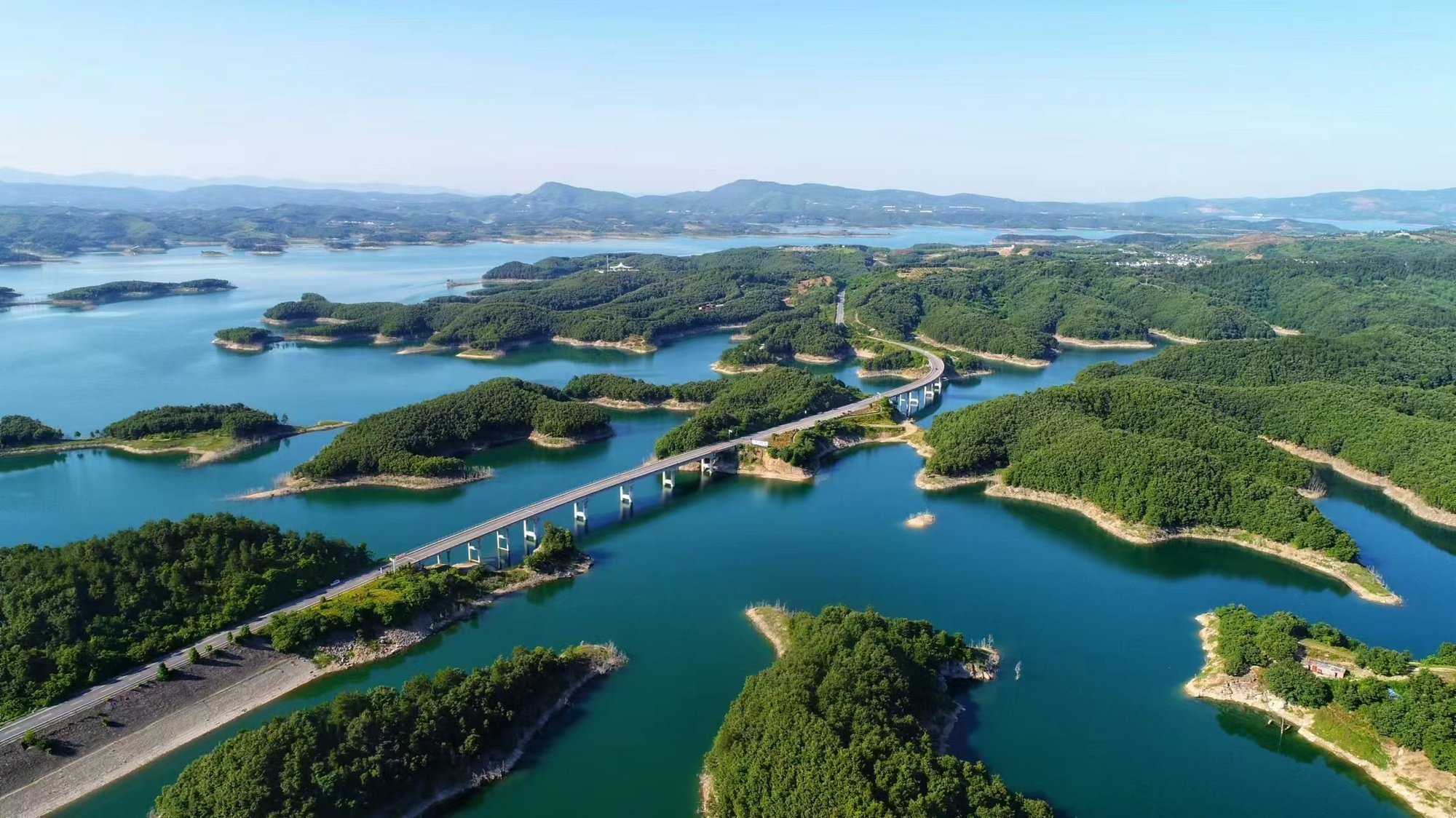 日前,記者駕車駛?cè)胧呤忻┧迎h(huán)線公路,仿佛進(jìn)入了一片天然氧吧,周身被一庫(kù)碧水和郁郁蔥蔥的青山環(huán)抱,撲面而來(lái)的是清新的自然氣息。