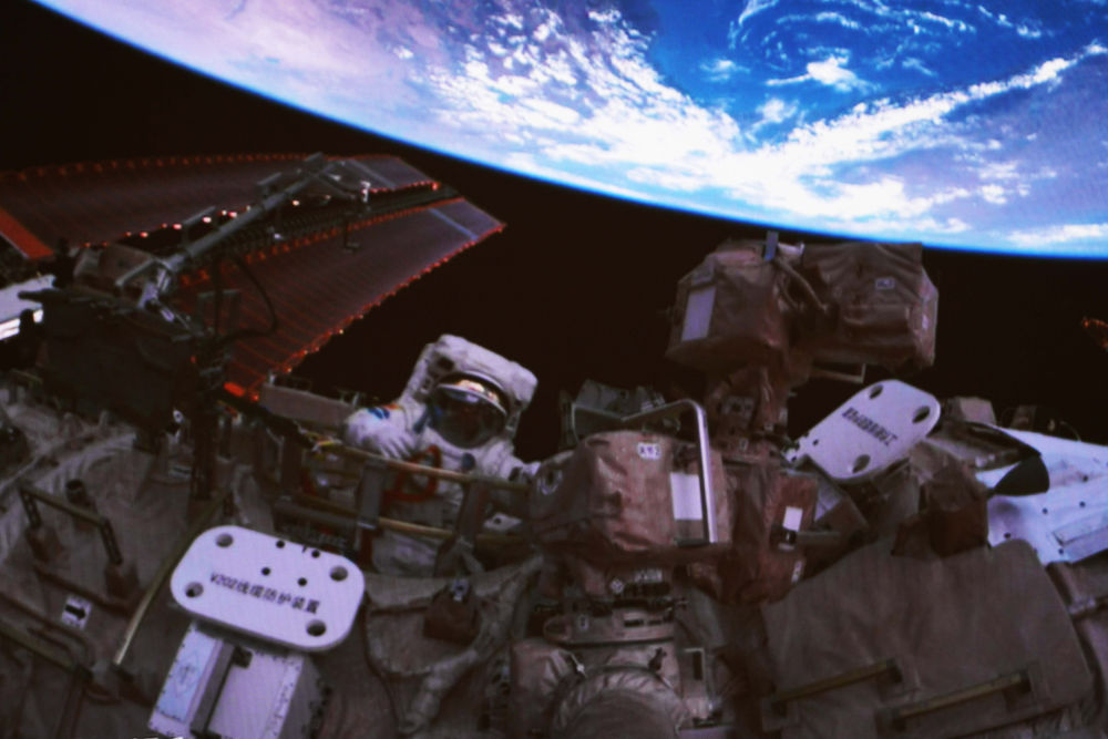 2024年7月3日在北京航天飛行控制中心拍攝的神舟十八號(hào)航天員李聰出艙的畫(huà)面。