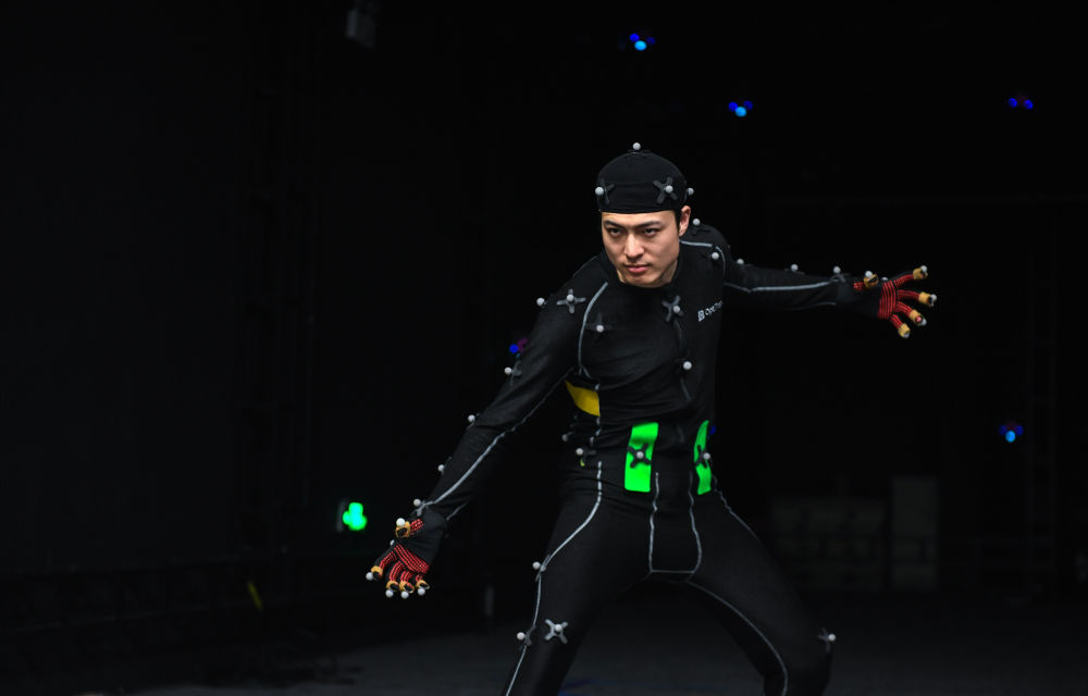 8月28日,在深圳的一個(gè)動(dòng)捕基地,殷凱在演出中利用肢體動(dòng)作展現(xiàn)游戲角色特點(diǎn)。