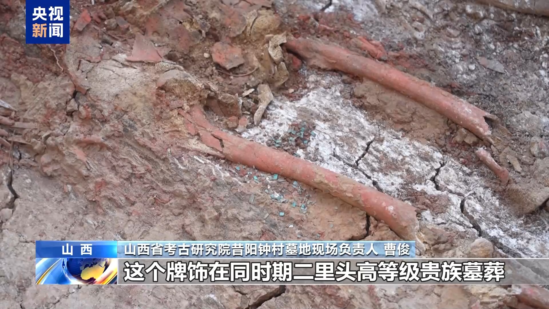 三星堆遺址工作站副站長 許丹陽:有一件玉人像,和長江中游地區(qū)的肖家屋脊文化出土的玉器有相似之處,表明與長江中游地區(qū)也有聯(lián)系。新發(fā)現(xiàn)的這些玉石器,不僅增加了我們對三星堆玉石器種類的認識,而且也豐富了我們對三星堆與周邊地區(qū)文化交流的認識。表明以三星堆遺址為代表的古蜀文化與周邊地區(qū)同時期的文化存在著廣泛交流,也是中華文明多元一體格局的重要實證。 意外發(fā)現(xiàn)夏商大型墓葬 出土哪些文物? 此次國家文物局發(fā)布的重大項目中,還有一項考古發(fā)現(xiàn)是“意外之喜”??脊湃藛T今年在山西省晉中市昔陽縣鐘村社區(qū),意外發(fā)現(xiàn)了一處夏商之際高等級墓地,來看看目前出土了哪些文物? 目前已確認它是夏商之際黃土高原東部發(fā)現(xiàn)規(guī)模最大、等級最高的墓地,年代距今約3500年,其中5座夏商之際的高等級墓葬,是本次發(fā)掘的重要收獲。 山西省考古研究院昔陽鐘村墓地現(xiàn)場負責人 曹俊:這5座墓的規(guī)模非常大,單體墓葬的規(guī)模大,等級高,可以說是一個王級別的墓葬。這個規(guī)格的墓葬可以說是獨立于二里頭夏王朝之外的另外一個小的王國。 已發(fā)現(xiàn)的墓葬隨葬品均在器物箱中出現(xiàn),有陶器、漆器、綠松石器等50余件套,器類組合有管流陶爵、陶斝、陶觚、陶罐等。其中,10號墓的規(guī)模最大,墓主人是一名男性,身體涂有朱砂,頭頂覆有扇貝,左側(cè)股骨下隨葬綠松石嵌片牌飾,具有明顯的二里頭文化因素。 山西省考古研究院昔陽鐘村墓地現(xiàn)場負責人 曹?。?/strong>扇貝覆面這種喪葬習俗,目前是從先商,大概是二里頭四期,一直到商代晚期有使用。男性墓主人右側(cè)股骨位置,有一個由綠松石的小碎片,嵌片組成的一個綠松石牌飾。這個牌飾在同時期二里頭高等級貴族墓葬才隨葬的。我們經(jīng)過綠松石礦源的檢測分析,初步判斷綠松石的礦源來自 東秦嶺地區(qū)。這件綠松石牌飾的出土表明它與二里頭之間很可能存在很密切的文化交流的關(guān)系。