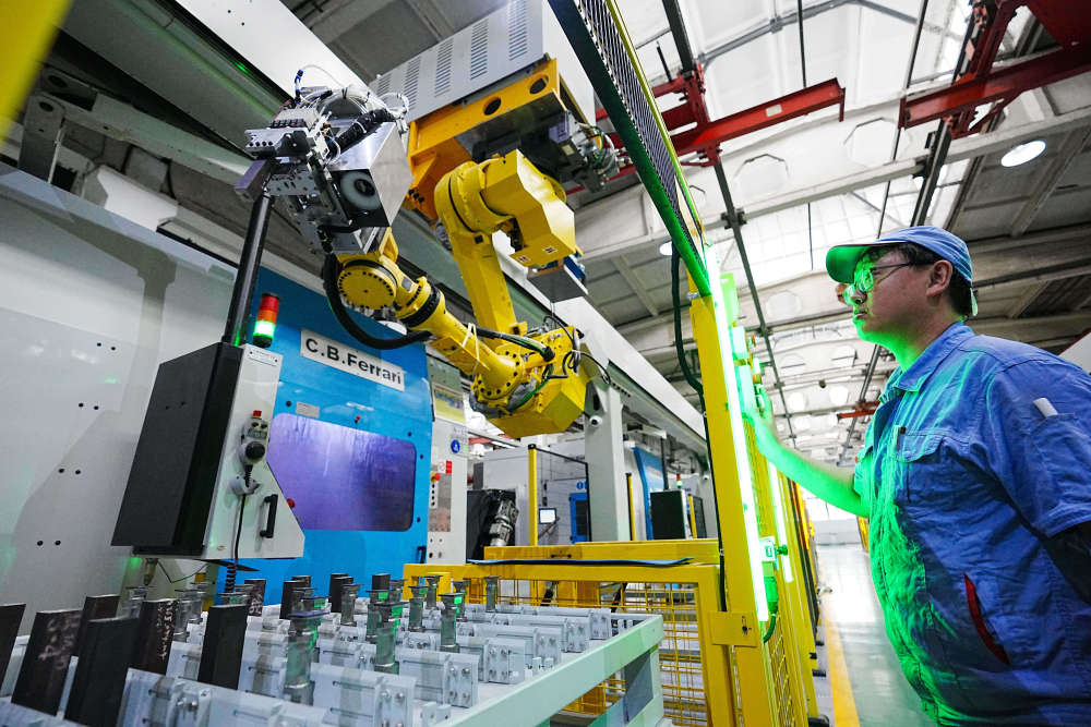 7月23日,在哈電集團哈爾濱汽輪機廠有限責(zé)任公司葉片加工智能化車間,工作人員在觀察智能機械臂運行情況。近年來,東北三省加大力度推進傳統(tǒng)制造業(yè)數(shù)字化改造,依靠科技創(chuàng)新“第一動力”,聚焦“卡脖子”領(lǐng)域,讓傳統(tǒng)產(chǎn)業(yè)增“智”提“質(zhì)”。(新華社記者 王建威 攝)