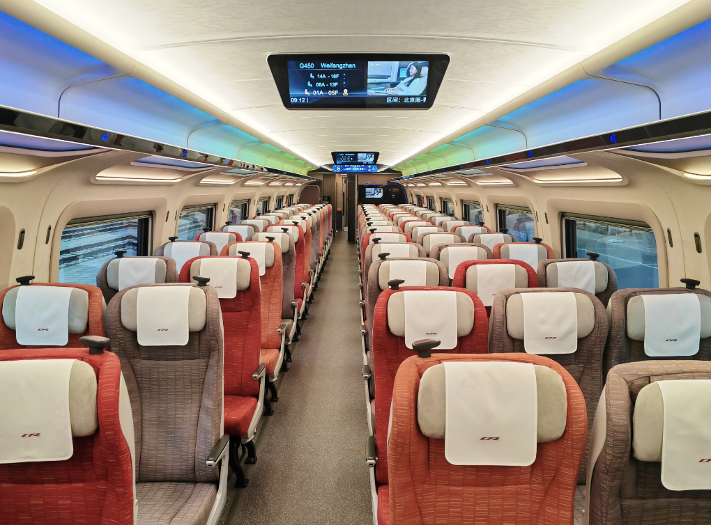 CR450AF動(dòng)車(chē)組的二等座車(chē)廂。新華社記者王聿昊 攝