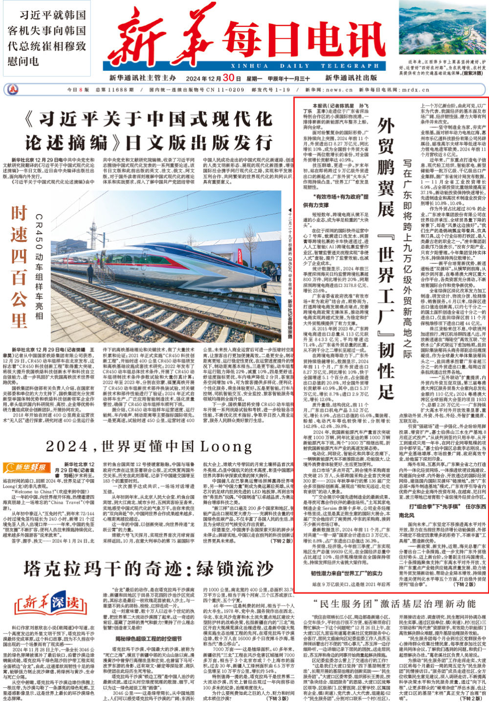 ——“五外聯(lián)動”擴量提質,內外貿內外資互促雙強。第三屆粵港澳大灣區(qū)服務貿易大會意向總發(fā)包金額約110億元;2024粵港澳大灣區(qū)全球招商大會簽約項目1933個、總額2.26萬億元……廣東持續(xù)擴大高水平對外開放效果顯著,重點推動外貿、外資、外包、外經、外智擴量提質、互聯(lián)互動。