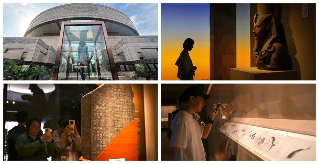 拼圖:(左上、右上)上海博物館人民廣場館的“金字塔之巔:古埃及文明大展”;(左下)上海博物館東館的中國歷代書法館(右下)上海博物館東館的中國歷代繪畫館