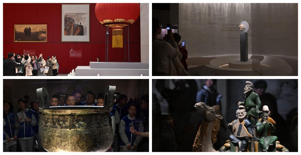 拼圖:走進(jìn)中國國家博物館感受“文博熱”:(左上)“風(fēng)展紅旗如畫——館藏紅色經(jīng)典文物展”(右上)“美的多元——古希臘的藝術(shù)與生活”展覽(左下、右下)“古代中國”基本陳列展