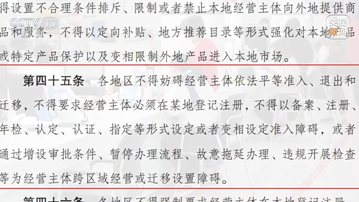 《全國統(tǒng)一大市場(chǎng)建設(shè)指引》強(qiáng)調(diào),不得以通過增設(shè)審批條件、暫停辦理流程、故意拖延辦理、違規(guī)開展檢查等為經(jīng)營主體跨區(qū)域經(jīng)營或遷移設(shè)置障礙,并將其作為加力破除地方保護(hù)和市場(chǎng)分割的重要舉措。