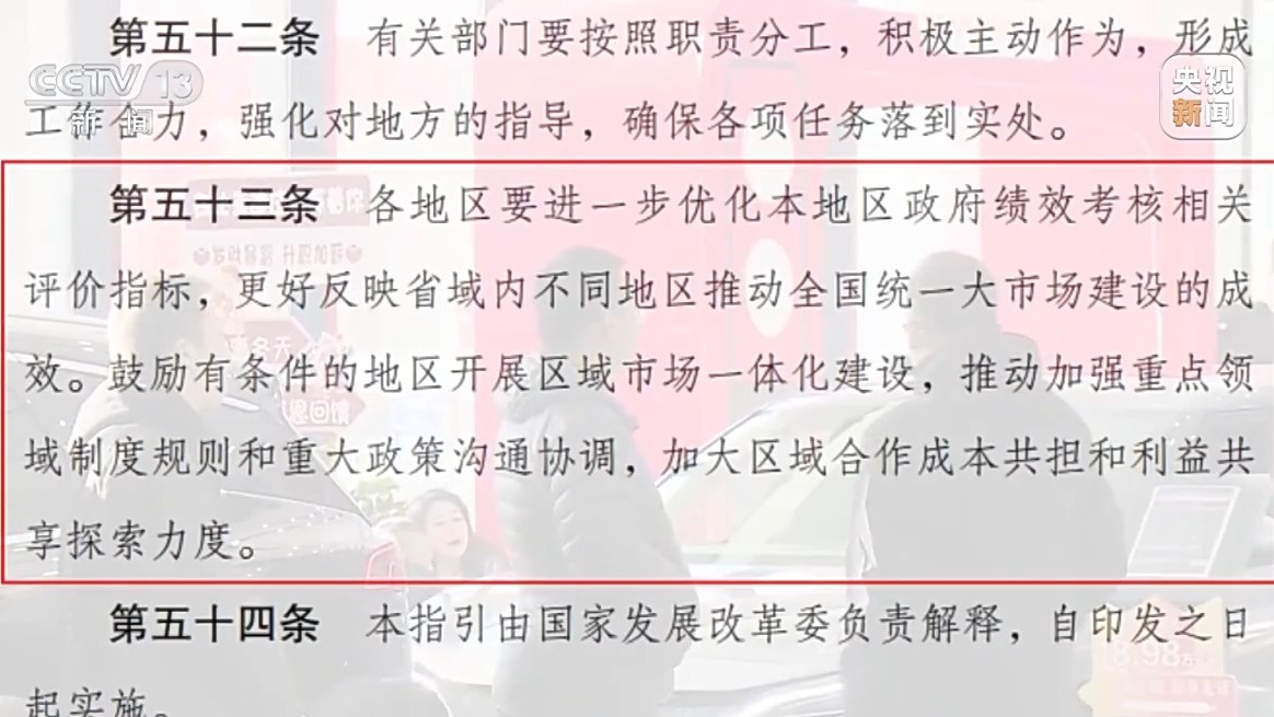 建設(shè)全國統(tǒng)一大市場(chǎng),要求地方政府做到全國一盤棋,破除地方保護(hù)和市場(chǎng)分割。但人口和企業(yè)流動(dòng),會(huì)帶來經(jīng)濟(jì)數(shù)據(jù)和稅收的增與減,這也對(duì)地方政績考核標(biāo)準(zhǔn)提出了新的要求。為此《指引》提出,各地區(qū)要進(jìn)一步優(yōu)化本地區(qū)政府績效考核相關(guān)評(píng)價(jià)指標(biāo),更好反映省域內(nèi)不同地區(qū)推動(dòng)全國統(tǒng)一大市場(chǎng)建設(shè)的成效。