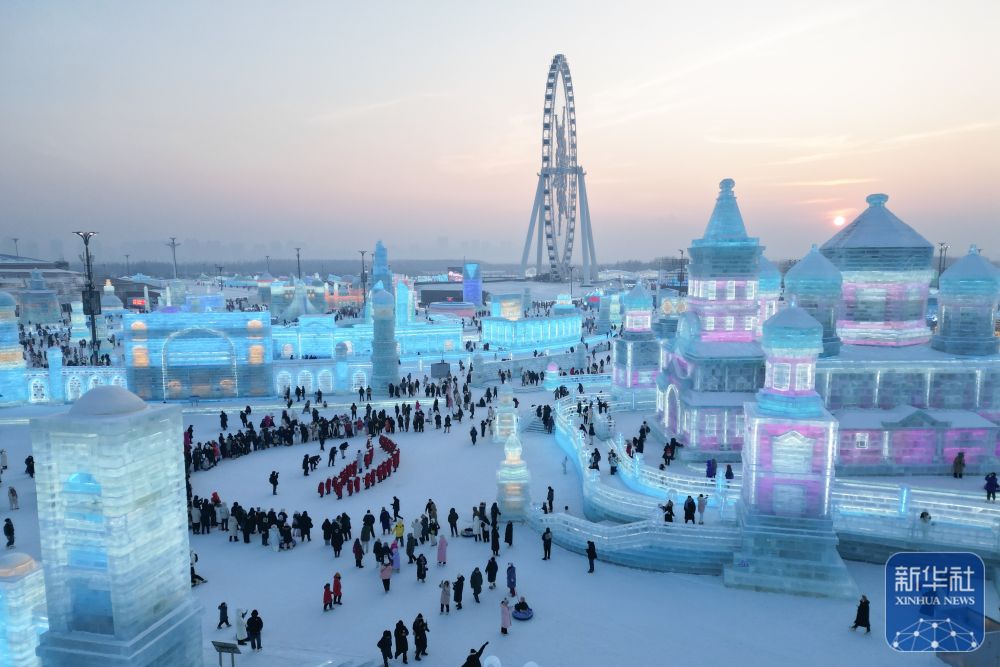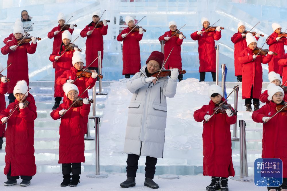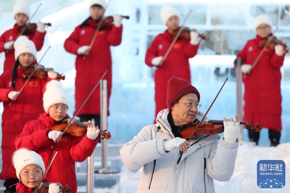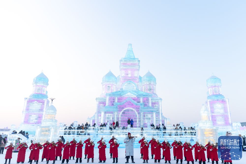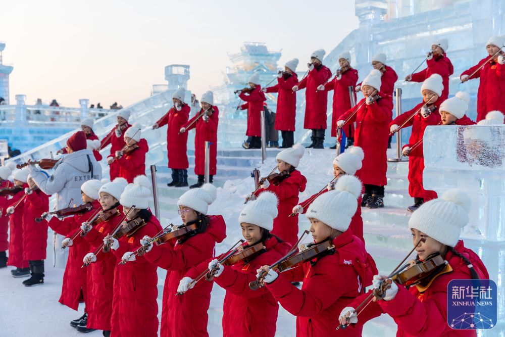 當日,哈爾濱冰雪大世界園區(qū)上演音樂“快閃”,為即將到來的亞冬會助力。