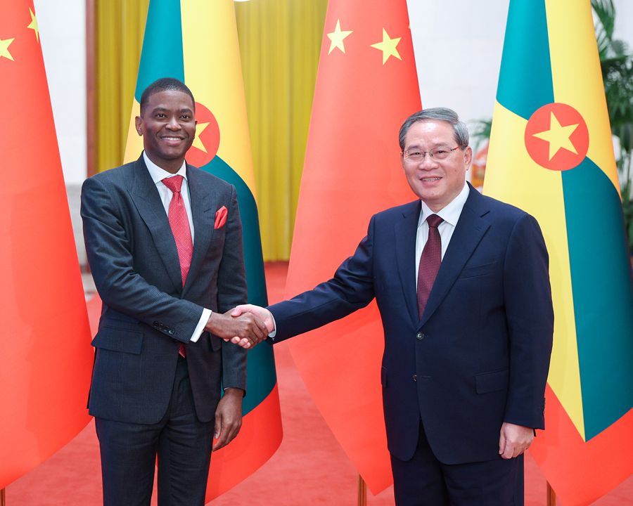 國(guó)務(wù)院總理李強(qiáng)1月13日在北京人民大會(huì)堂同來(lái)華進(jìn)行正式訪問(wèn)的格林納達(dá)總理米切爾舉行會(huì)談。