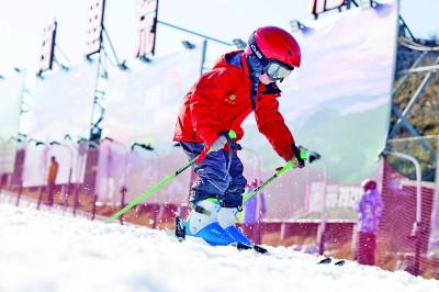 小朋友在湖北省宜昌市夷陵區(qū)百里荒滑雪場體驗(yàn)滑雪。新華社發(fā)